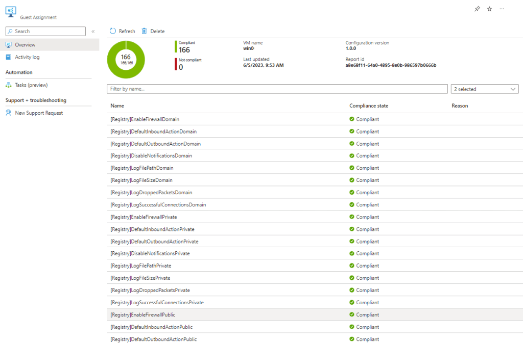 Les machines qui sortent de cette liste de conformité sont réalignées automatiquement dans un délai très court de 30 minutes. Cerise sur le gâteau, ces machines communiquent avec le service Automation pour consigner leur état et consolider un rapport. Bonne nouvelle, toute cette partie est équivalente avec Azure Automanage Machine Configuration. On ne repart pas de zéro !