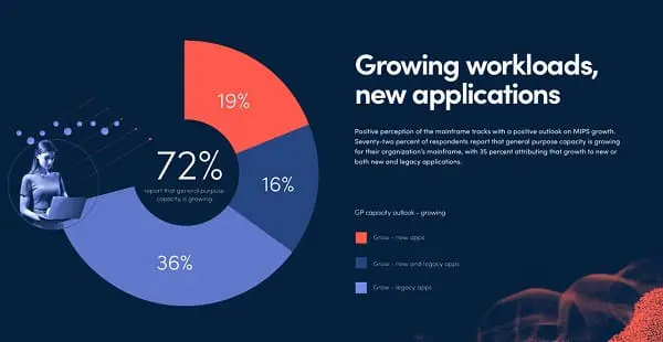 Cette nouvelle génération d’experts est à l’initiative d’un programme de modernisation du mainframe. Pour eux, la plateforme continuera de se développer et à accueillir de nouveaux workloads. La croissance du MIPS mainframe est robuste, 72 % signalant une augmentation de la capacité à usage général.