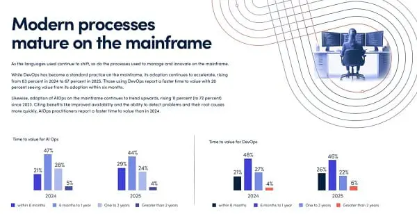Si la conformité et la sécurité restent les priorités, l’AIOps, l’automatisation et la modernisation progressent. Selon Steven Dickens, CEO et princpal analyst d’HyperFRAME Research « Avec une génération de professionnels natifs du numérique l’essor du cloud et des workflows basés sur l’IA, et l’émergence de l’AIOps comme priorité absolue, le mainframe n’est plus seulement une question de stabilité, il s’agit d’alimenter l’innovation et de générer un avantage concurrentiel. »