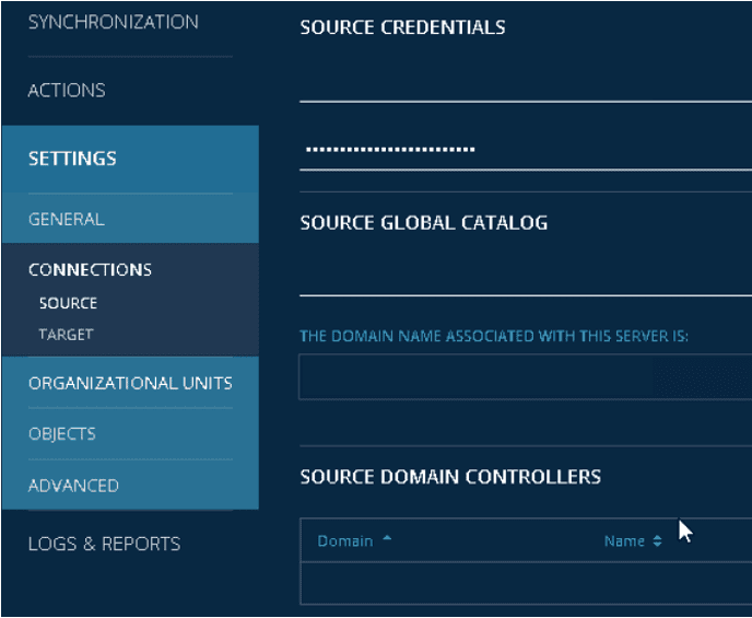 Comptes de services qui devront être respectivement administrateurs des domaines cible et source, si vous envisagez de synchroniser les mots de passe des utilisateurs et si vous envisagez d’utiliser la migration des identités de sécurité (SID) via la fonctionnalité SID history.