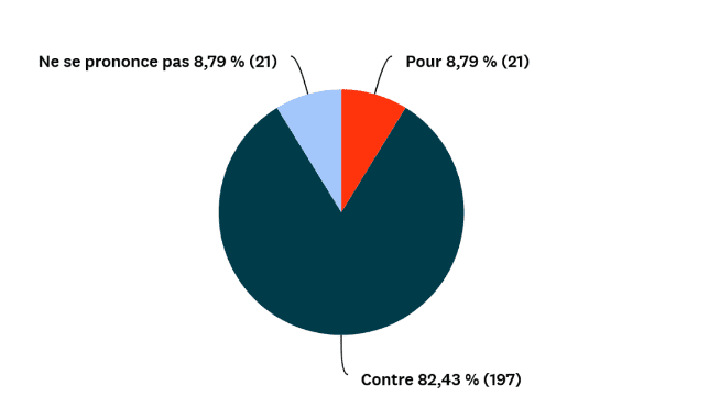 - 82% des 249 répondants se positionnent contre
