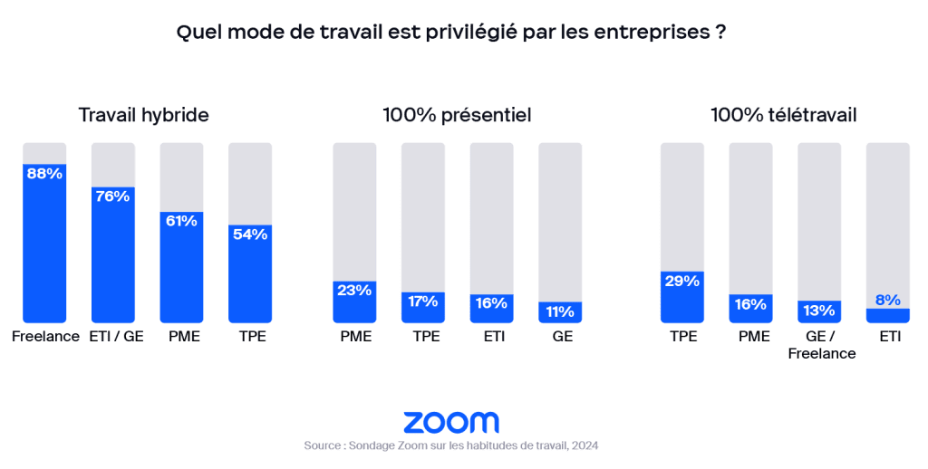 Le mode hybride privilégié, quelle que soit la taille d’entreprise, de la TPE à la GE