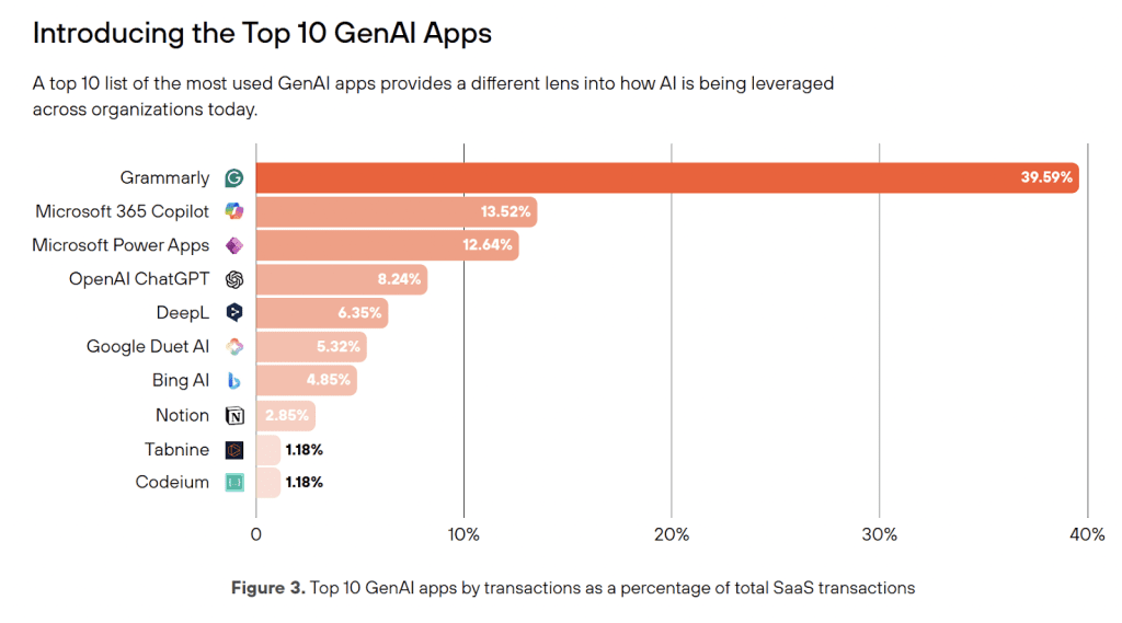 Selon Palo Alto Networks, chaque organisation utilise en moyenne 66 applications GenAI, dont 10 % sont jugées à haut risque. L’engouement est fort pour des outils comme Grammarly, ChatGPT, Microsoft Copilot ou DeepL, notamment dans les secteurs technologiques, industriels et financiers. A noter que 83,3% des usages les plus courant de la GenAI concernent :
