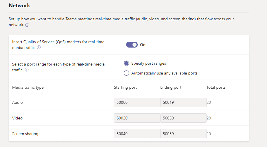 - Les clients Mac, utiliseront ces ports par défaut mais attention, ces ports ne sont pas modifiables car codés en dur dans le client Teams pour Mac.
