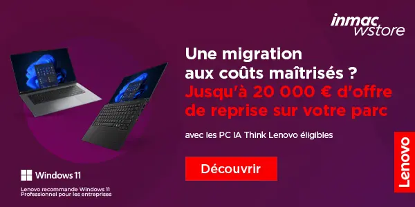 La fin du support de Windows 10, annoncée pour le 14 octobre 2025, marque un tournant pour les entreprises. Pour accompagner cette évolution, Lenovo lance une offre exclusive avec inmac wstore : jusqu’à 400 € remboursés par appareil Lenovo Think éligible lors de la reprise d’un ancien ordinateur portable, fixe ou d’une station de travail.