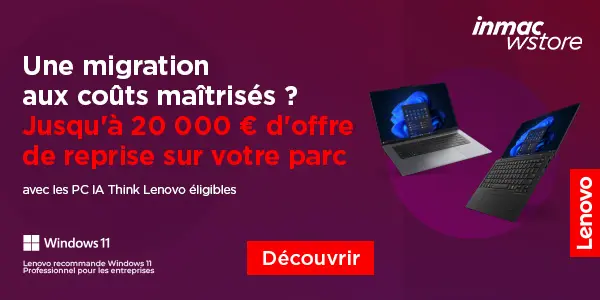 Cette initiative combine donc gain économique, modernisation technologique et engagement ESG. Passez à Windows 11 Professionnel dans les meilleures conditions avec Lenovo & inmac wstore.