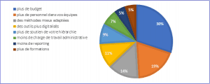 Toutefois, une augmentation du budget est perçue comme le premier facteur capable d’améliorer ces résultats (30 %) suivi de celle des effectifs (19 %) et de méthodes plus adaptées (14 %).