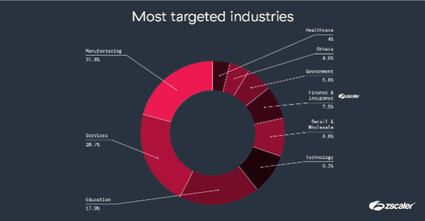 Source : Etude ThreatLabz – Analyse de 2milliards de transactions de phishing bloquées entre janvier et décembre 2024, en explorant divers aspects (attaques de phishing les plus courantes, pays ciblés, pays hébergeant les contenus de phishing, répartition des types d’entreprises selon les adresses IP des serveurs, principaux référents liés à ces attaques