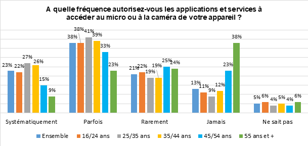 - 38 % des 55 ans et plus déclarent n’autorisent jamais ces accès à leurs applications et services mobiles