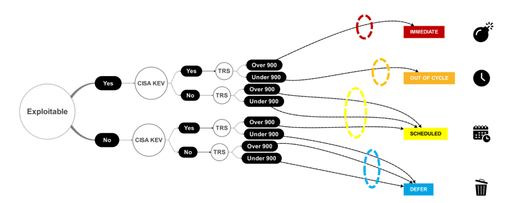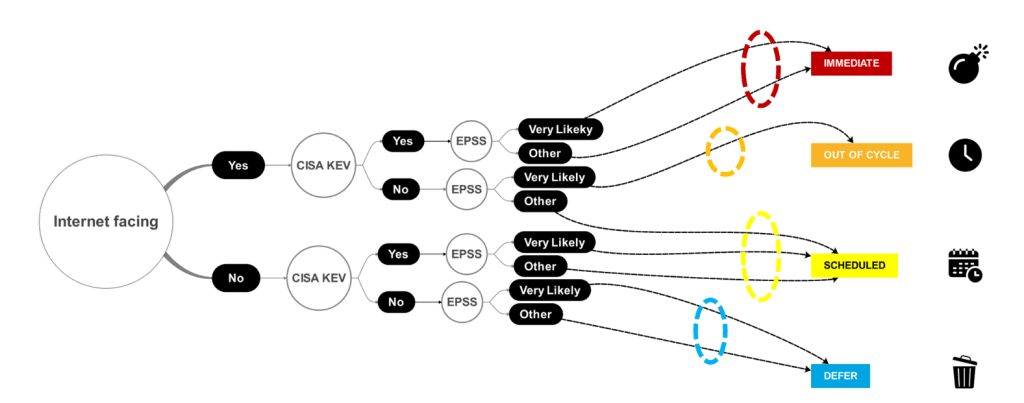 - Définir des arbres de décisions SSVC pour le tri automatique vers des stratégies de remédiation